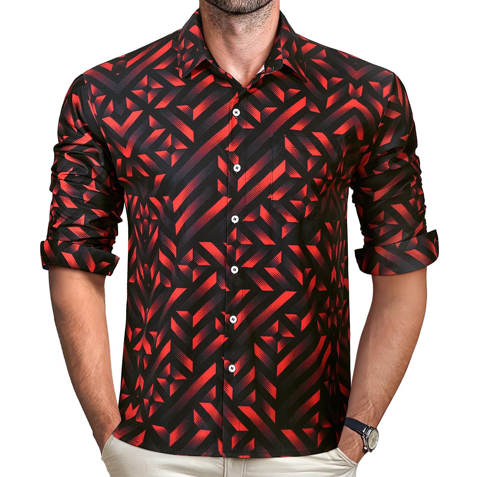 Geometric Men's Pocket Long Sleeve Shirts