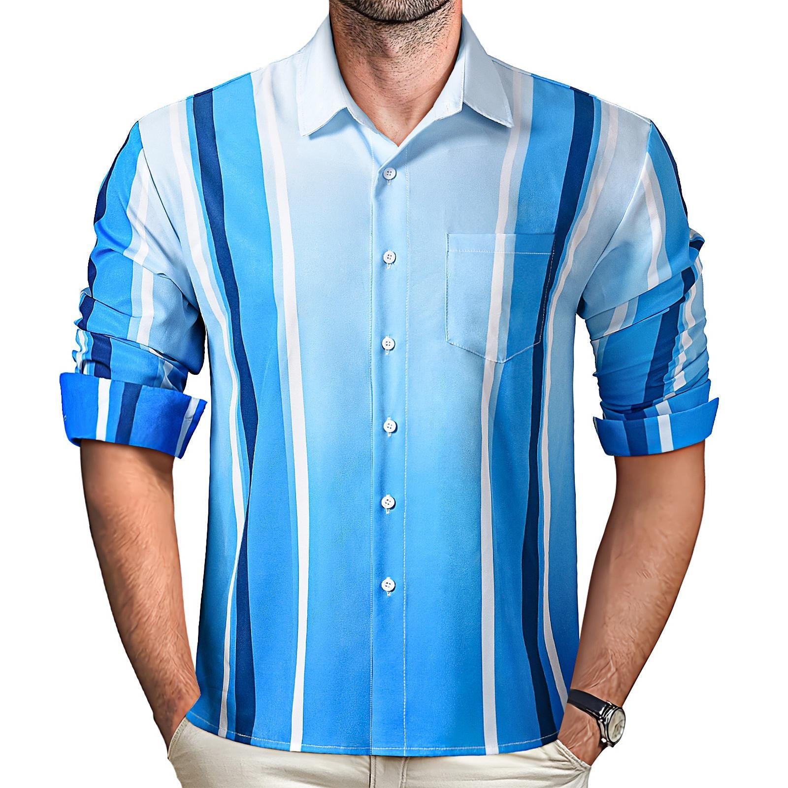 Geometric Stripe Gradient Men's Pocket Long Sleeve Shirts